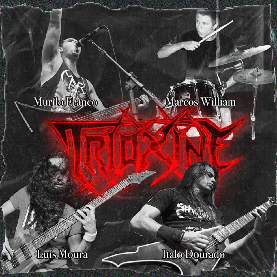 R: A banda começou com o Murilo Franco (guitarrista solo e vocal) e um outro amigo, Murilo Silva, mas era apenas um projeto de covers, principalmente de Violator, e com o passar do tempo, alguns riffs foram surgindo e formando as primeiras música do que seria Trioxine. O nome veio depois do Murilo Franco ter assistido o filme "O retorno dos mortos-vivos" e viu que o gás que fazia os mortos voltarem a vida se chamava Trioxin.