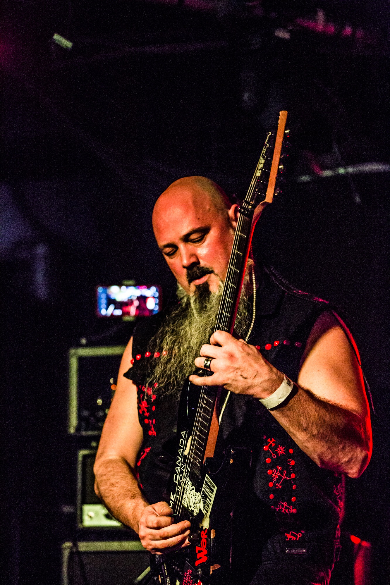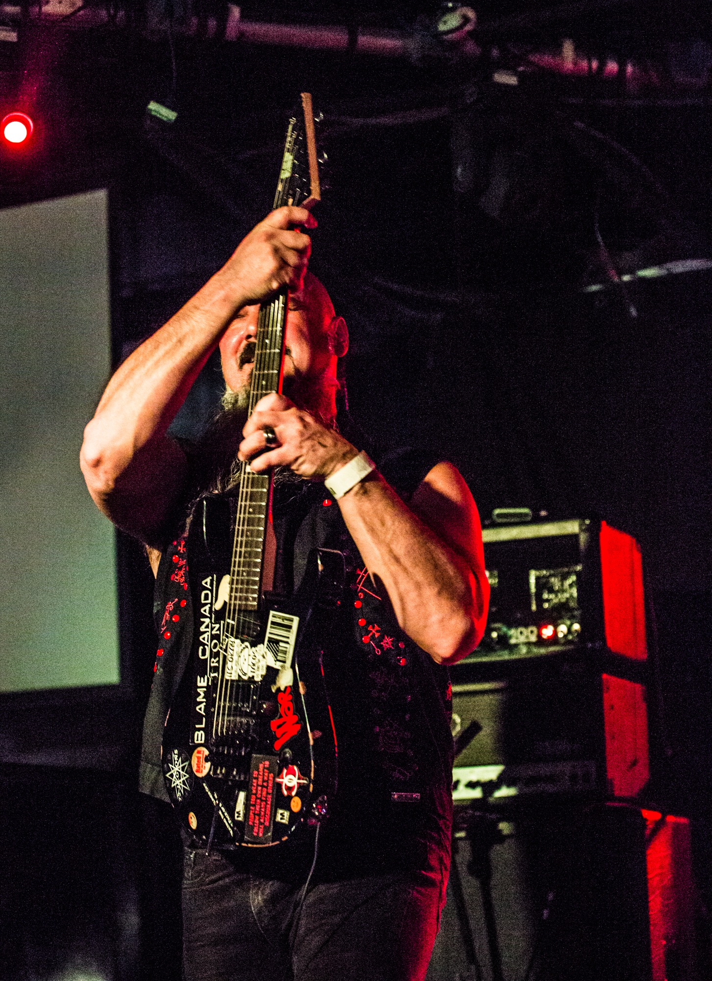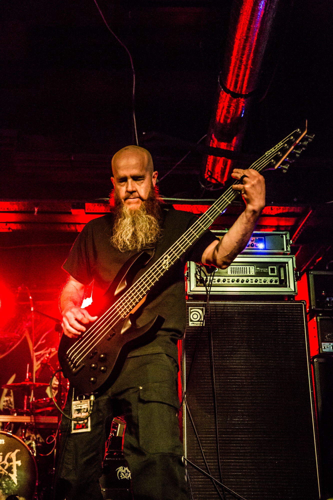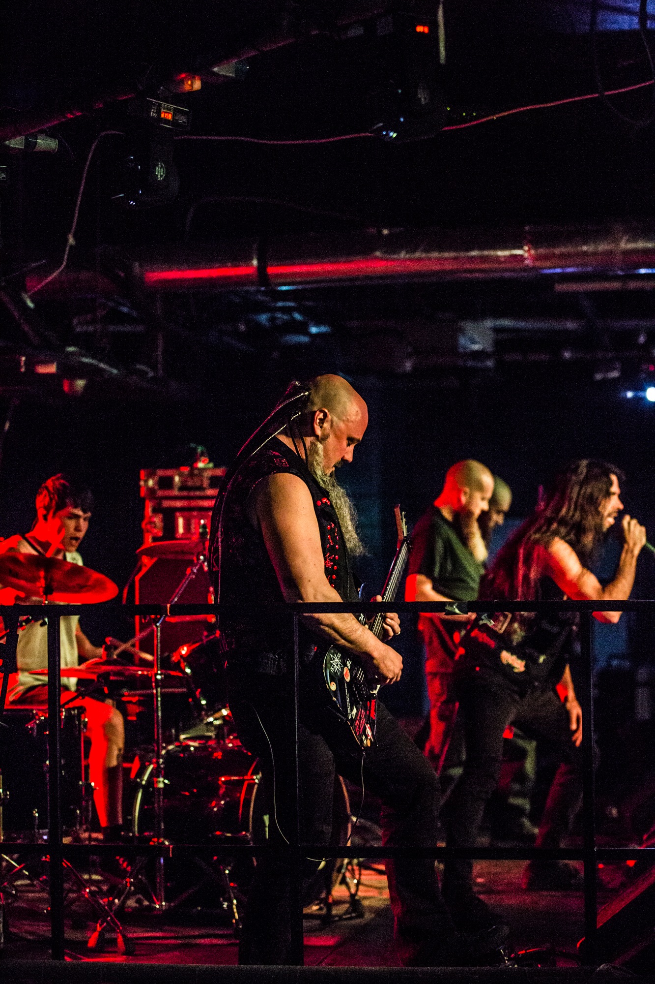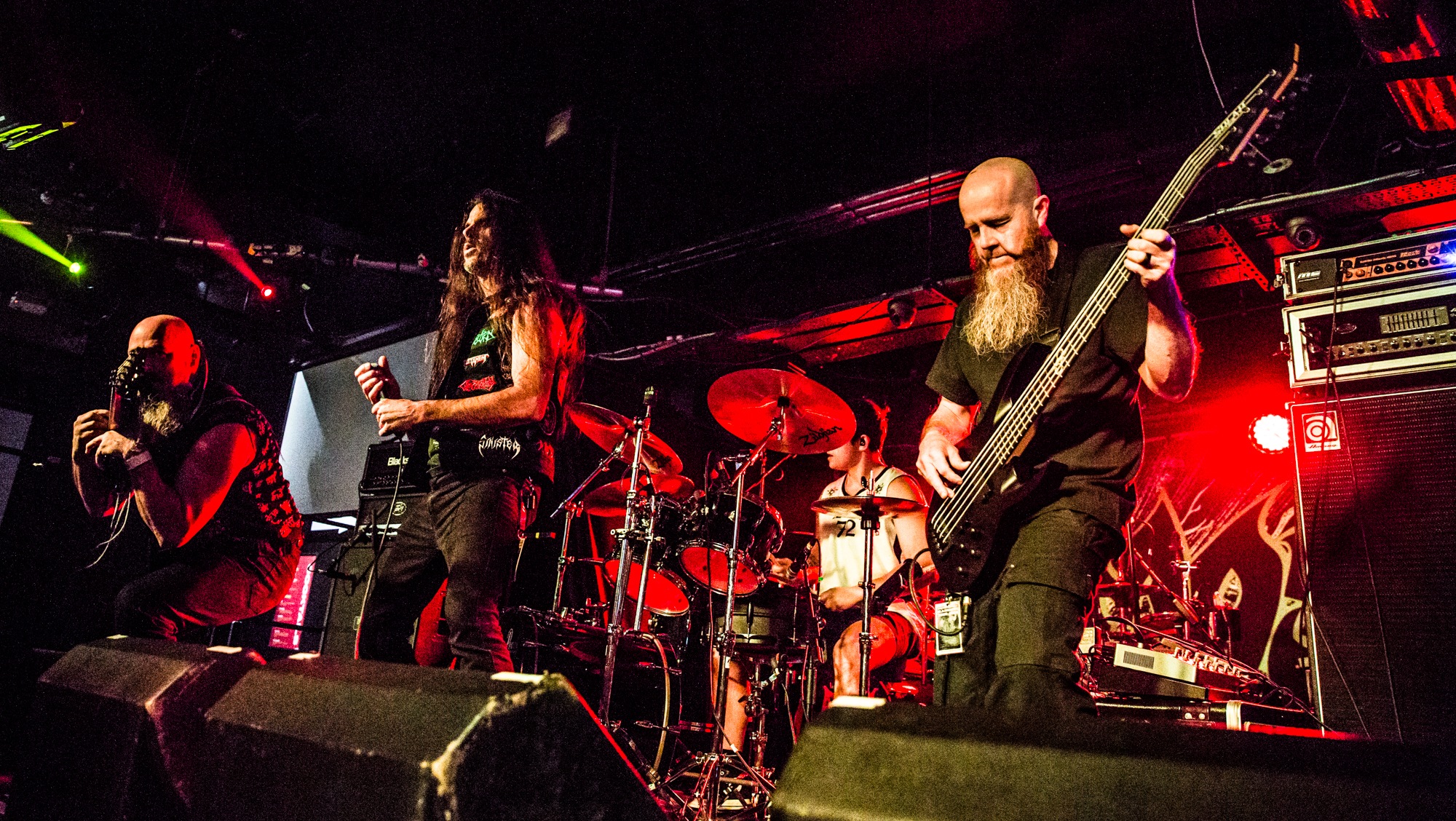 Cryptopsy @ Slay, Glasgow. Photo Credit: Duncan McCallCanada’s tech death metal titans CRYPTOPSY will need to have the best performance of the night to top ATHEIST‘s. And indeed, they begin their performance on a lighter foot, with new song In Abeyance from last year’s As Gomorrah Burns. The lack of familiarity with this song leaves the punters reserved and far too motionless for a death metal show. However, the next song is the beloved Graves Of The Fathers, which really ignites appetites and demands pugnacious pits and headbanging. CRYPTOPSY‘s visionary of sinister technical death metal is surely among the apex of the sub-genre and it’s clear to understand why classic albums including None So Vile and Blasphemy Made Flesh solidified them into the upper echelons of tech death.