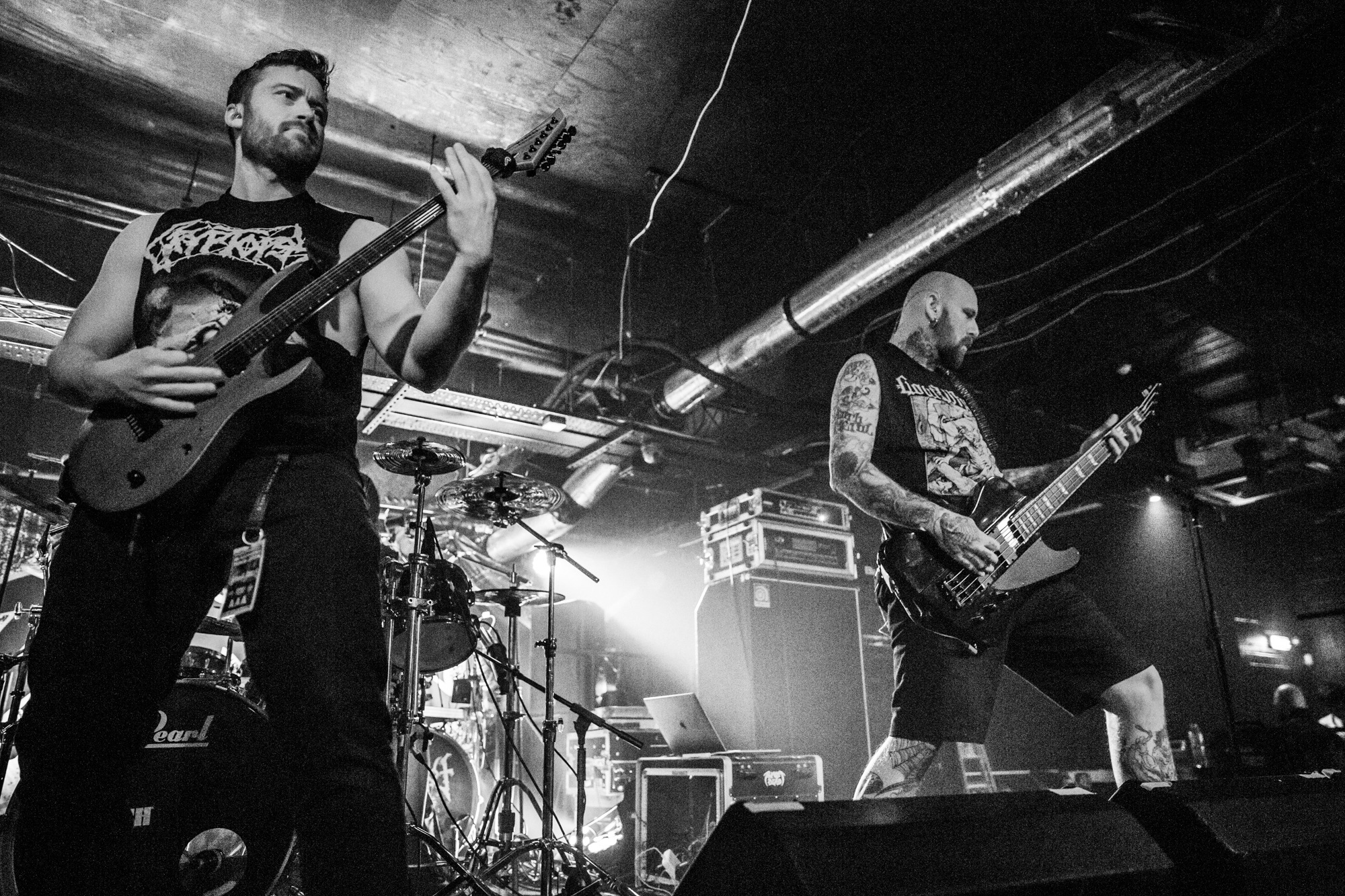 Cryptopsy @ Slay, Glasgow. Photo Credit: Duncan McCallThat said, the musicianship of the band is an incredulous sight to behold, furious and intricate, especially mainman Flo Mounier on the drums. McGachy does an serviceable job as a death metal vocalist these days but still struggles to fill the shoes (both vocals and stage presence) of his predecessor, Lord Worm. The closing song of the night is Orgiastic Disembowelment, another classic to end on a higher note. But ATHEIST‘s performance still surpasses them.